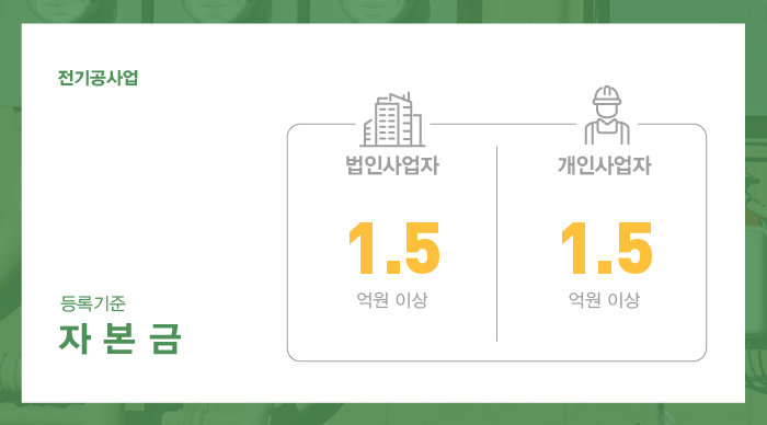 자본금 1억 5천만원 이상이 준비되어야 전기공사면허 등록이 가능하게 됩니다.