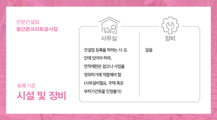 철근콘크리트공사업 면허 등록 및 사업 운영을 하기 적합한 사무공간이 준비되어야 합니다.