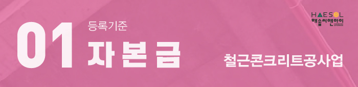 개인사업자의 경우 실질자본금으로서 등록기준 이상을 보유하면 되나, 법인사업자는 실질자본금과 함께 법인등기부등본상 납입자본금도 등록기준 이상을 충족할 수 있도록 준비해야 하며, 사업목적란에 철근콘크리트공사업에 관한 목적이 꼭 기재되어야 합니다.