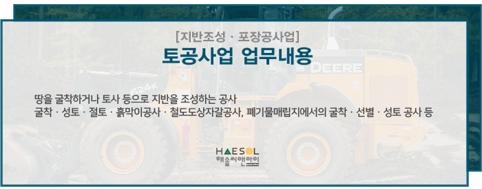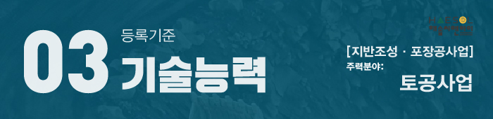 오늘은 지반조성포장공사업 주력분야 중 토공사업 면허 등록기준에 대해서 자세히 안내드리도록 하겠습니다.