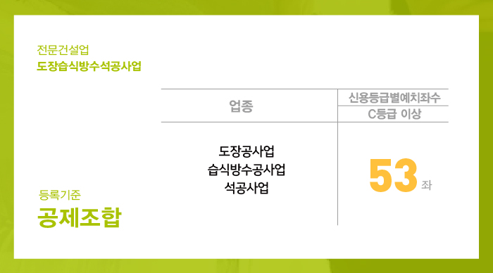 도장습식방수석공사업 면허 등록을 하기 위한 공제조합 출자 예치 약 5천만원 가량을 진행 해 주셔야 합니다.