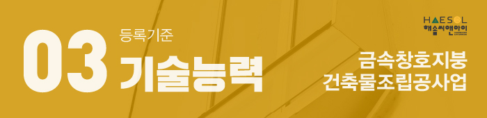 법인과 개인사업자 모두 자본금 1억 5천만원 이상을 보유해야 금속창호지붕건축물조립공사업 면허 취득이 가능하게 됩니다.