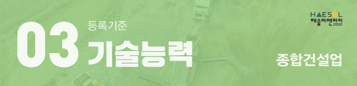 종합건설면허 기술능력 등록기준 충족을 위해서는 업종별로 규정된 자격을 갖춘 기술자 보유가 필요합니다.